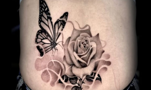 薔薇と、吸い寄せられるような蝶のデザインを腰に施術させていただきました🦋